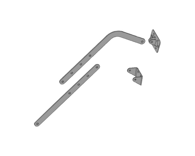 Монтажный комплект AN-MOTORS ASG.102. В комплекте: Кронштейн крепления рейки к стене; Кронштейн воротный; Тяга прямая; Тяга изогнутая.